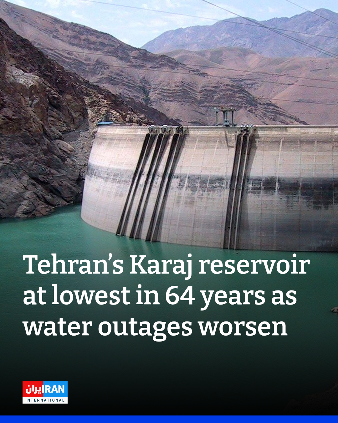 Karaj Dam, which supplies around 25% of Tehran’s drinking water, has dropped to its lowest level in 64 years, exacerbating widespread water outages across the Iranian capital.