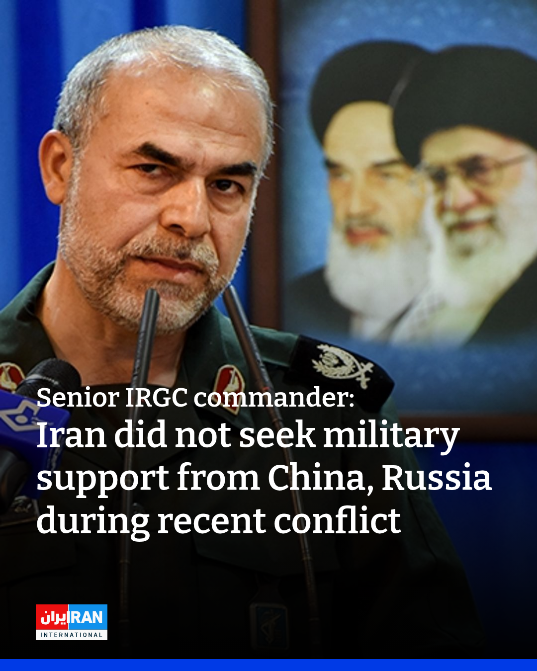 A senior commander in Revolutionary Guard said Tehran did not request military assistance from China or Russia during its recent 12-day conflict, adding that existing long-term cooperation agreements with the two powers do not include mutual defense obligations.