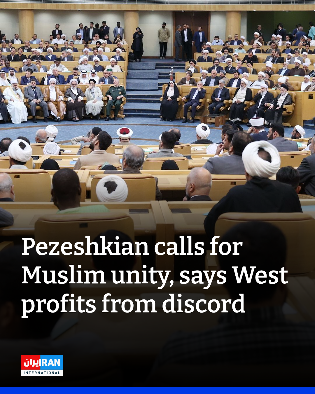 He told participants that external powers sought to profit from discord among Muslims. “The enemy sells weapons to Islamic countries, takes their resources, and wants to set us against each other,” Pezeshkian said. “If the Islamic community were united, could America, Israel or any other country violate the rights of Muslims?”