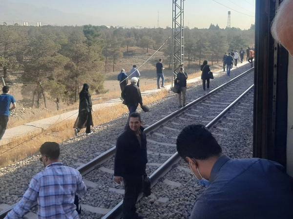 Footage from the Tehran–Karaj line showed frustrated passengers exiting carriages through emergency doors and walking along the tracks after a train broke down on Line 5, which links the capital with its western suburbs.