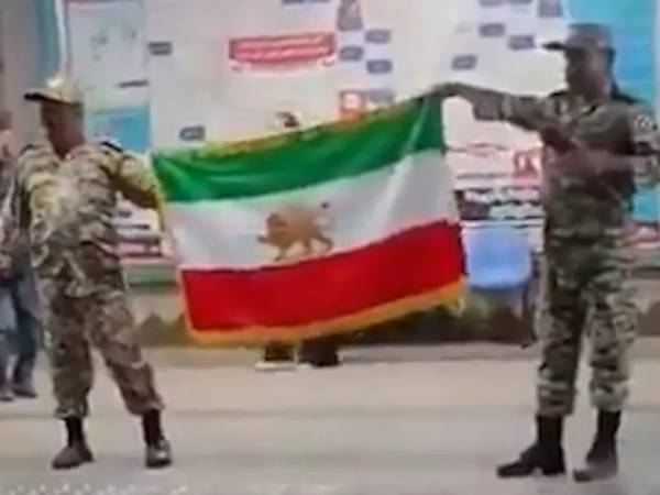 A video circulating on social media showed the pair unfurling the green-white-red banner emblazoned with the Lion and Sun emblem— a potent symbol of the ousted Pahlavi monarchy and frequent emblem in anti-government protests—on a crowded platform.